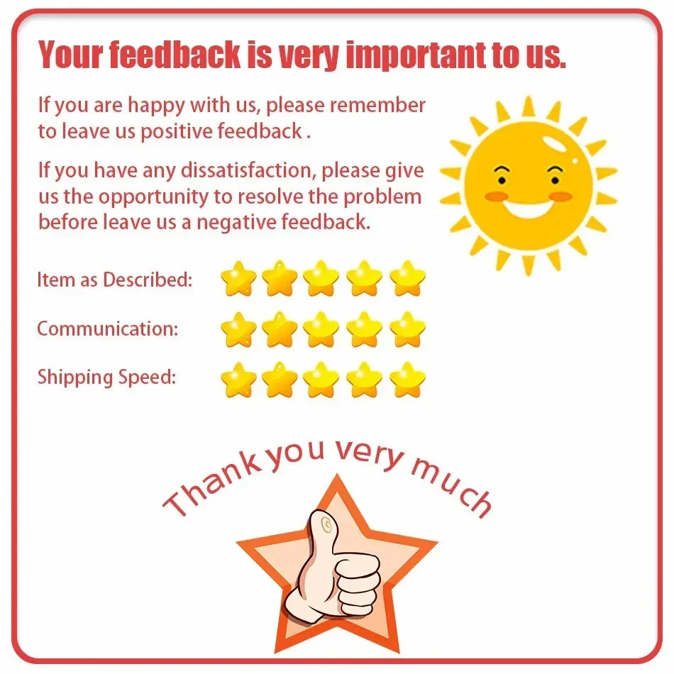 Your customer satisfaction and positive feedback is very important to us, please leave us the positive feedback and 5 stars if you are satisfied with our products and service.