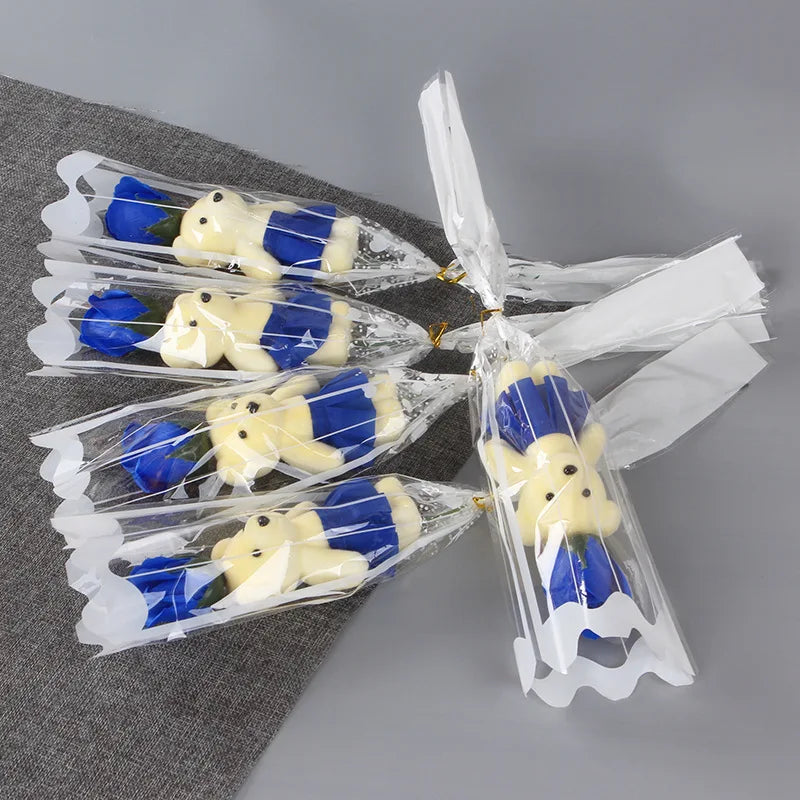 1 Pcs Romantic Artificial Soap Roses With Lovely Teddy Bear Birthday Gift Flowers Bouquet Scented Christmas Valentines Day Gift