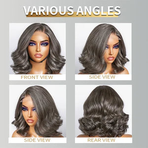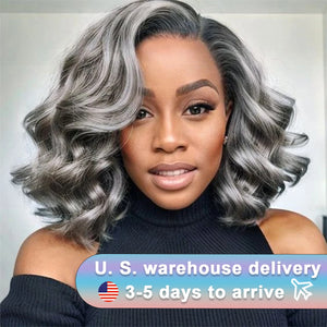 10 Inch Salt and Pepper Body Wave Short Bob Wig 5x5 Glueless Closure Wig Human Hair Wigs Lace Frontal Wig For Black Women