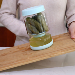 This is a must-have for pickle lovers, when we put sauerkraut or olives on sandwiches they often get soggy or our hands dirty, so we made wet-dry-seperate hourglass jars.Making it easy to pick or store pickles.