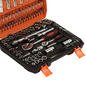 108 Pieces Mechanical Repair Tools Impact Socket Assortment Kit Ratchet and Hex Wrenches Screwdriver Bits