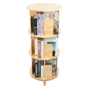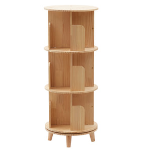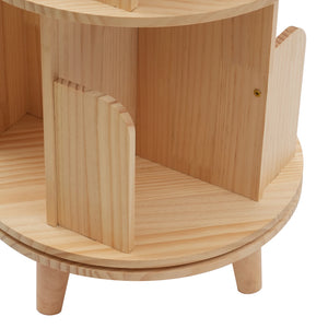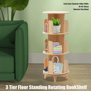 111cm Floor Standing Solid Wood 3-layer Rotating Bookshelf Home Storage Rack