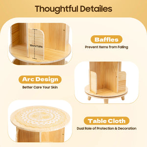 Multi-functional Bookshelf: You can assemble the rotating bookshelf into one, two, or three tiers according to your own needs. Different heights can expand its functions, such as serving as a coffee table, display cabinet, organizer, and so on.