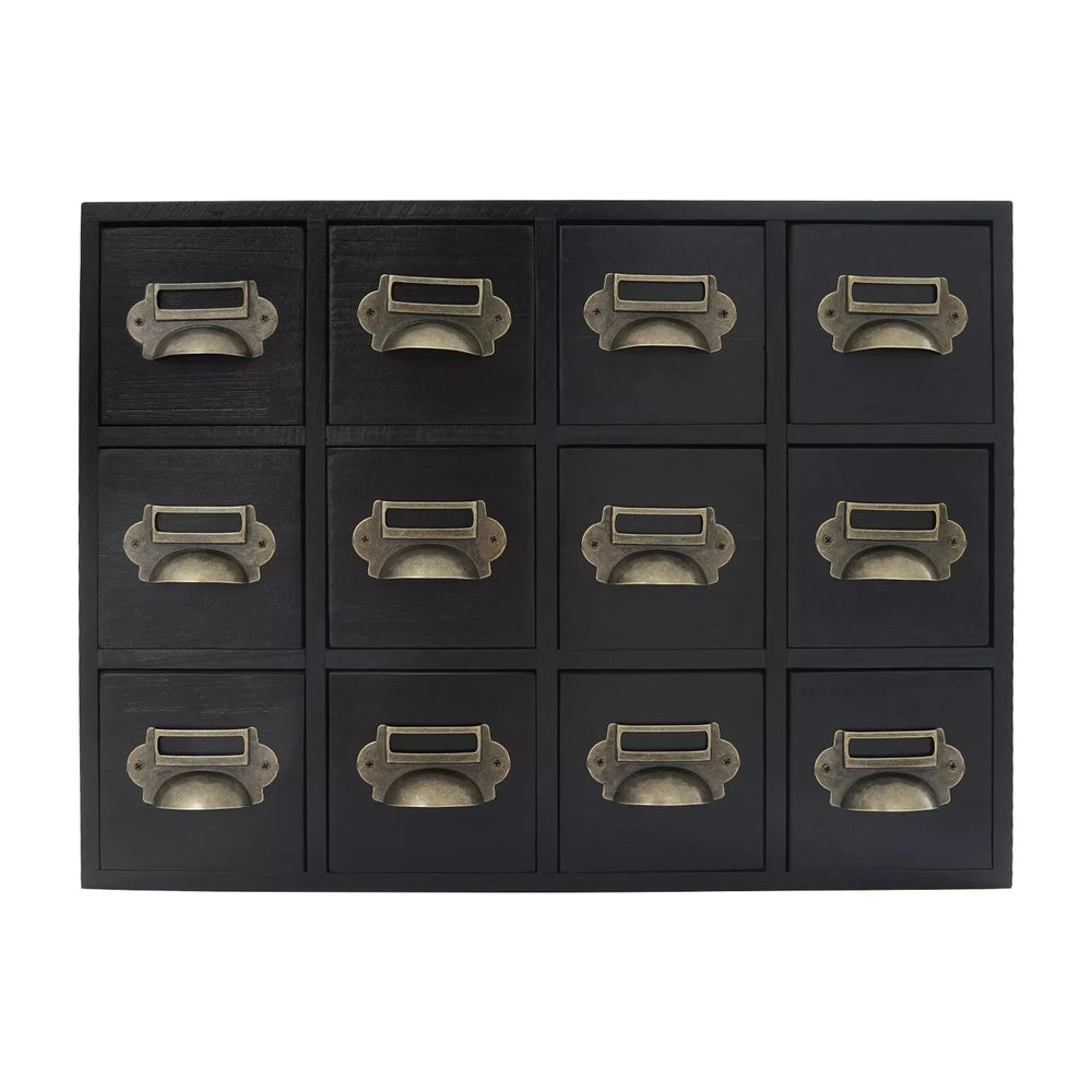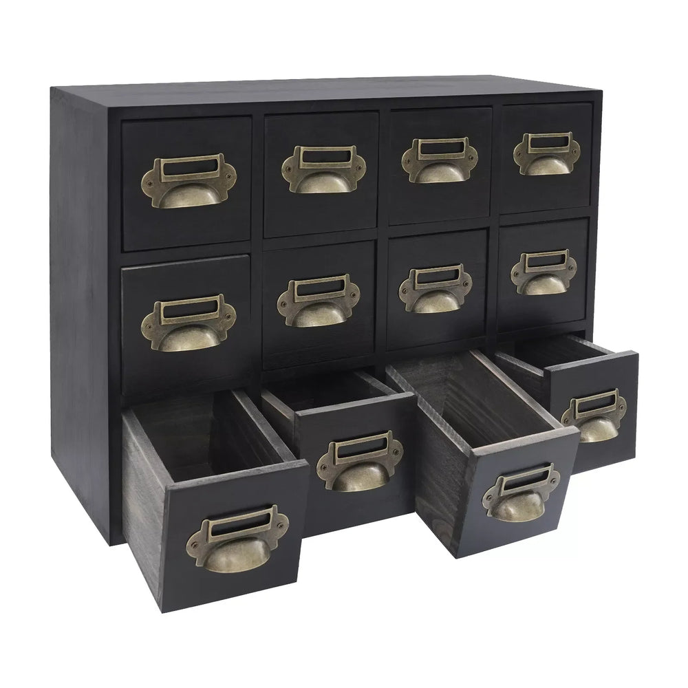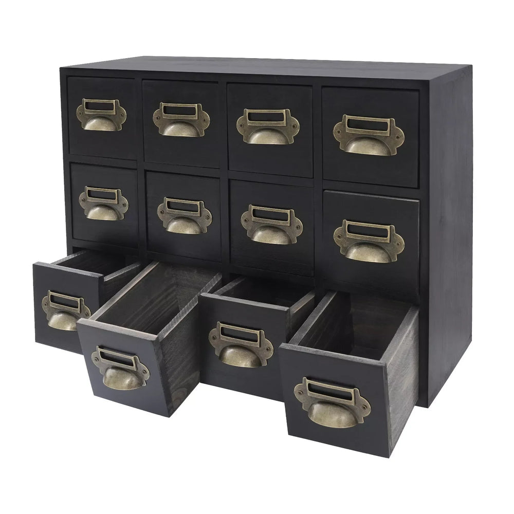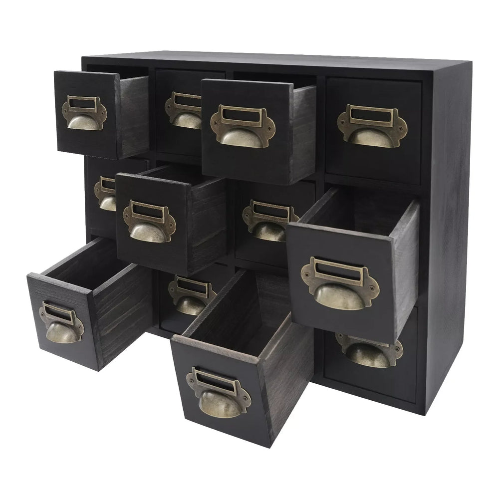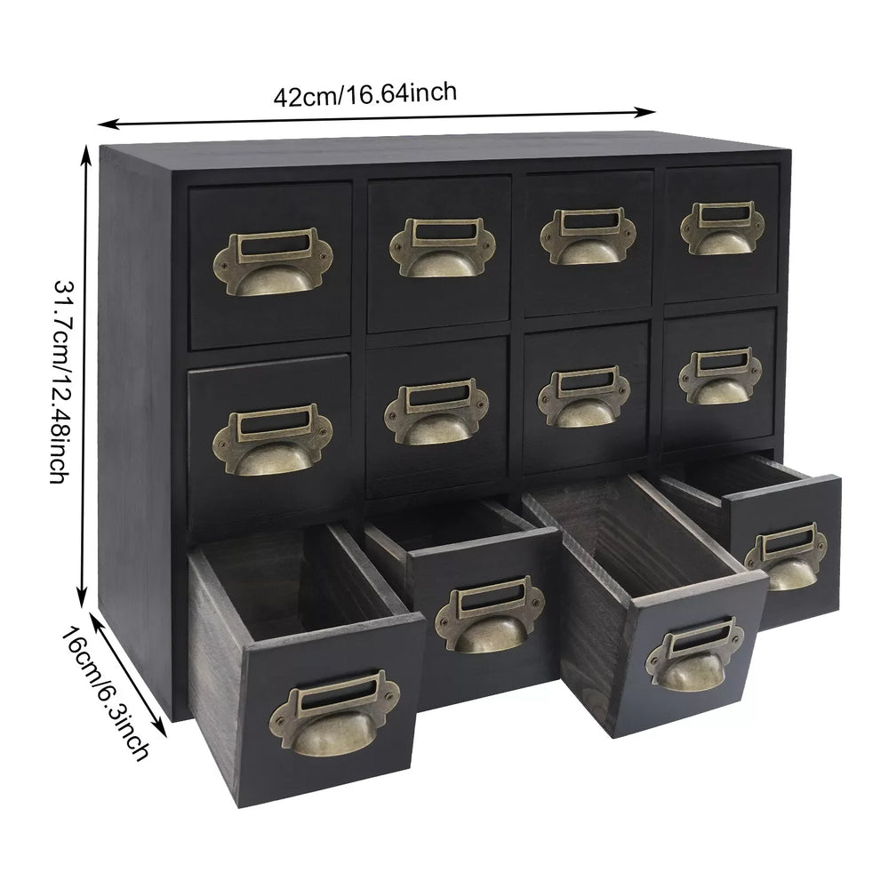 12 Drawers Wooden Desktop Organizer Home Storage Case Cosmetic Dresser Box Black