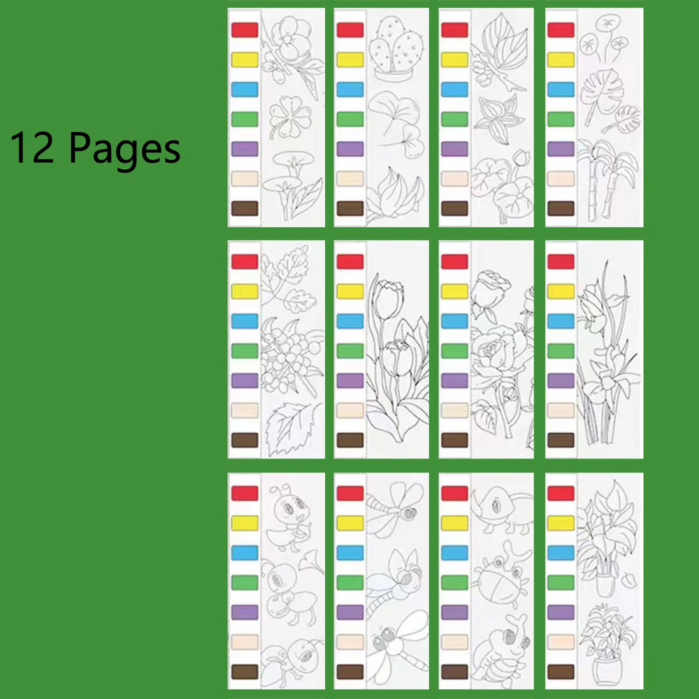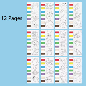 12pages Children's Watercolor Coloring Book,Drawing Toys For Thanksgiving, Easter, Christmas Gifts, With Built-in Watercolor Pen