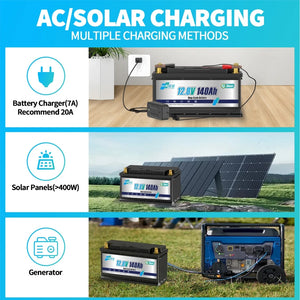 12V 140AH LiFePO4 Lithium Battery,6000+ Cycles LiFePO4 Battery with Built-in 100A BMS for RV, Home Storage,Trolling Motor,Solar