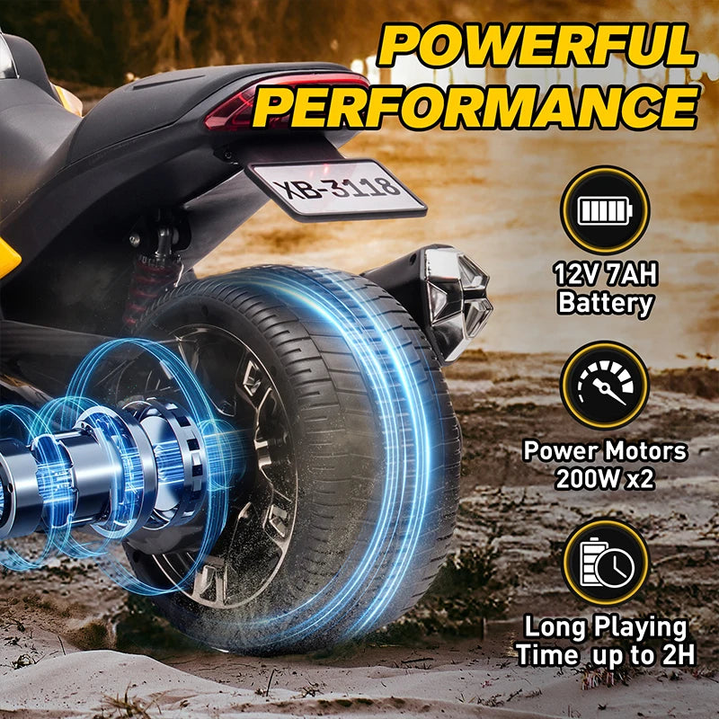 ćPowerful Performanceć: This electric ride on vehicle powered by two 550W motors and a 12 V 7A rechargeable battery, your child can enjoy 40-60 minutes of non-stop playtime, at a speed of 1.24-3.36mph