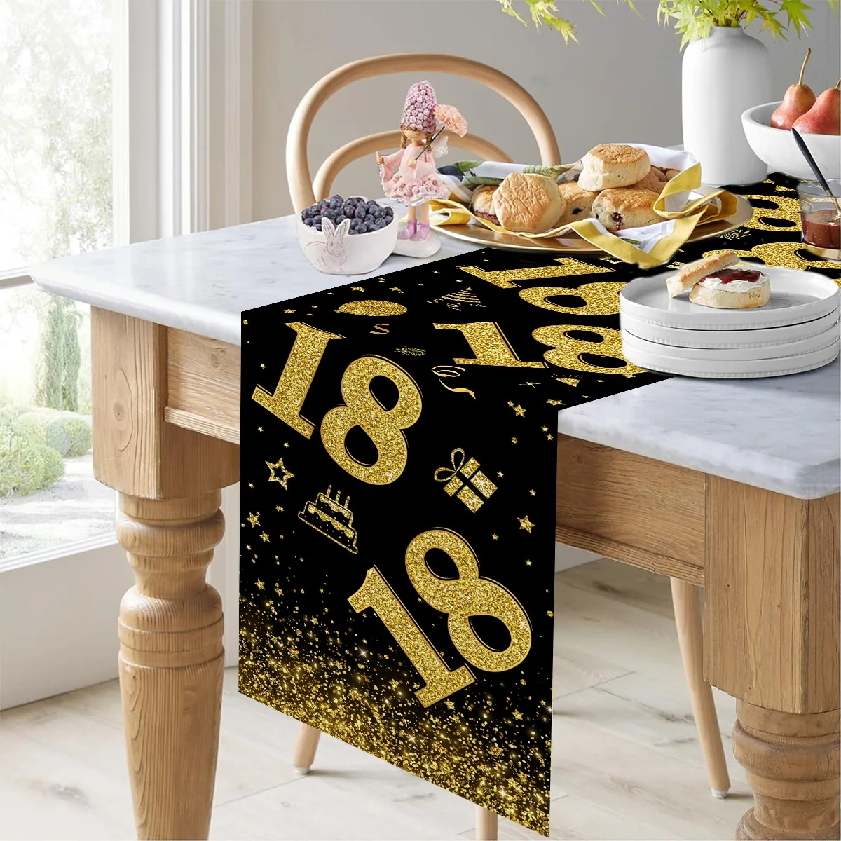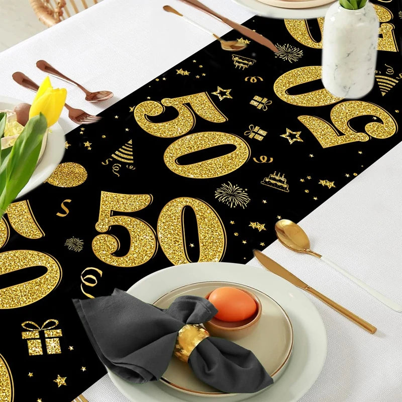 18 30 40 50 Year Old Black Gold Table Runner Happy Birthday Party Decoration Adult 30th 40th 50th 60t Birthday Tablecloth Banner