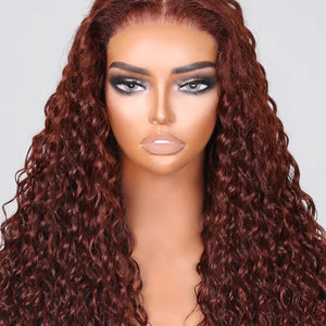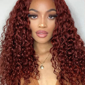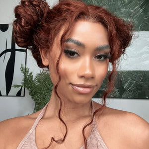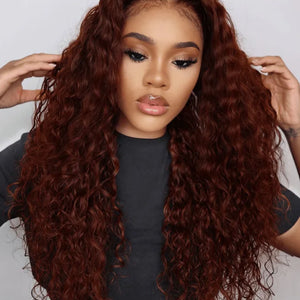 180% Density Copper Red 13x4 Glueless Human Hair Wig Colored Reddish Brown Curly Lace Front Wigs Human Hair Pre Plucked 28inch