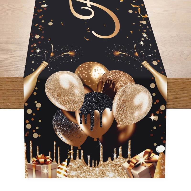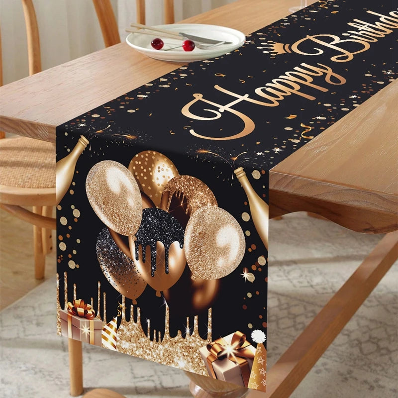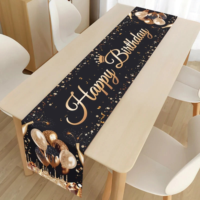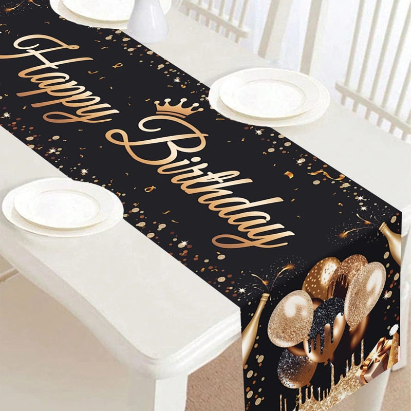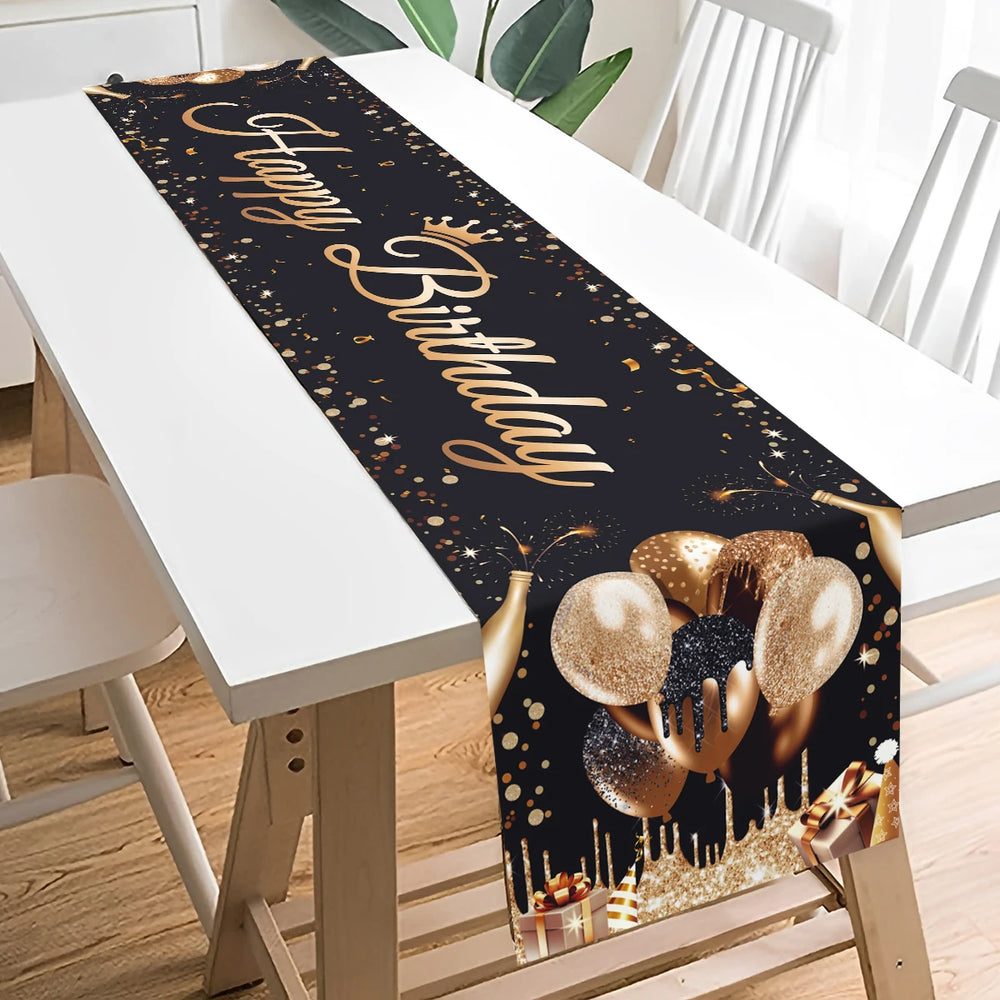 180x35cm Black Champagne Balloon Happy Birthday Table Runner HomeParty Decor Kids Adults Anniversary Birthday Party Supplies