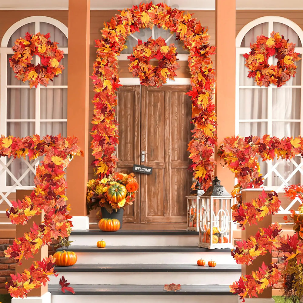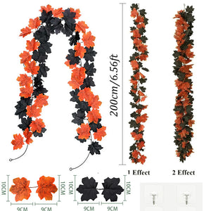 1Pc 5.9Ft Artificial Fall Maple Leaf Foliage Fake Plant Garland for Home Halloween Thanksgiving Party Wall Table Autumn Decor