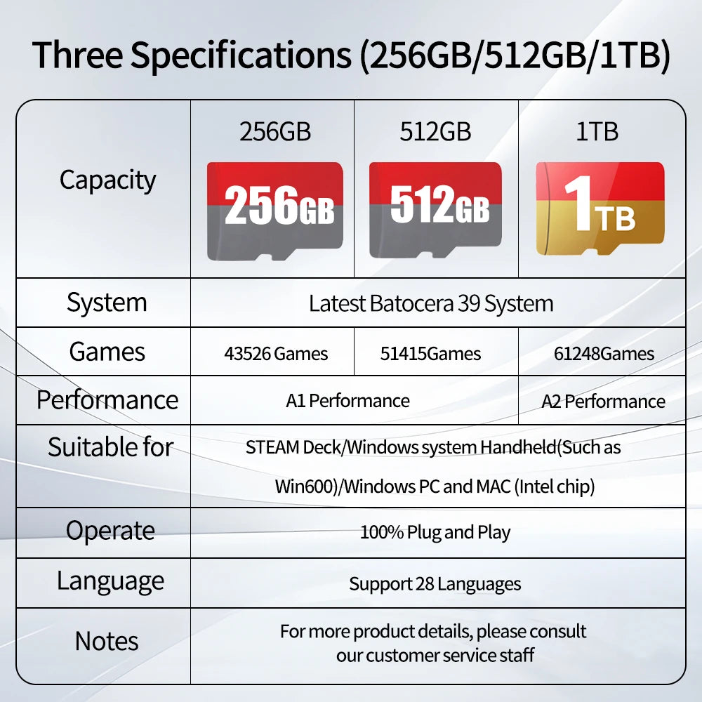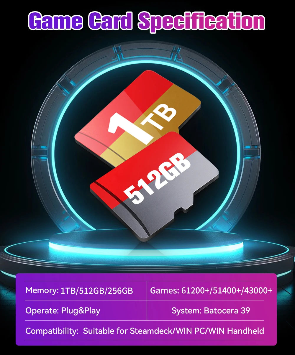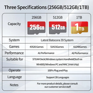 1TB TF/Game Card Batocera OS for Steamdeck/Handheld Game Console/Win PC/Laptop with 61248 Game 70+Emulators for PS3/2/1/PSP/MAME
