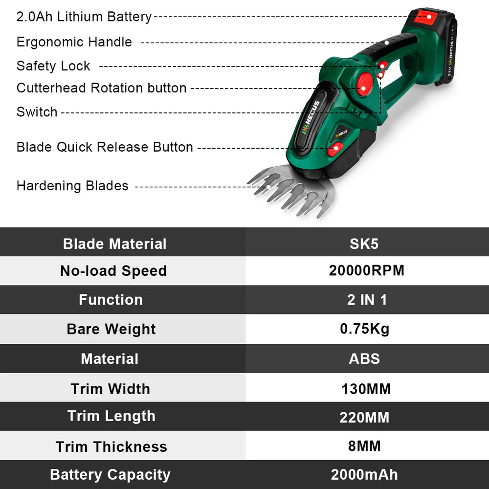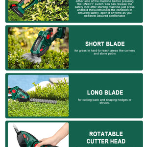 - Equipped with two different blades, it can be replaced easily and safely without tools.Meet the different needs of your garden.