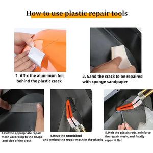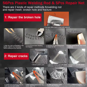✅【Upgrade Accessories】: Plastic weld kits are equipped for different types of repairs. The plastic rods is used in conjunction with Patch Net to effectively repair plastic surfaces. Wipe with a sponge before and after repairing to make the surface clean and smooth.