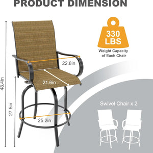 360 DEGREE SWIVEL BAR CHAIRS - This patio swivel bar stools chair, with a 330 lb weight capacity, supports 360 degree rotation. The ergonomic design of the seat and backrest brings you comfortable dining and leisure time in any posture. It allows you to talk with others from various directions or enjoy the scenery from different angles, maximizing the enjoyment of your break time