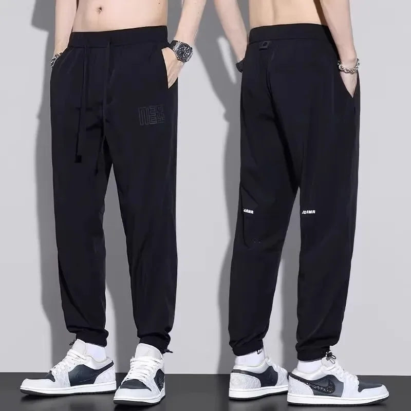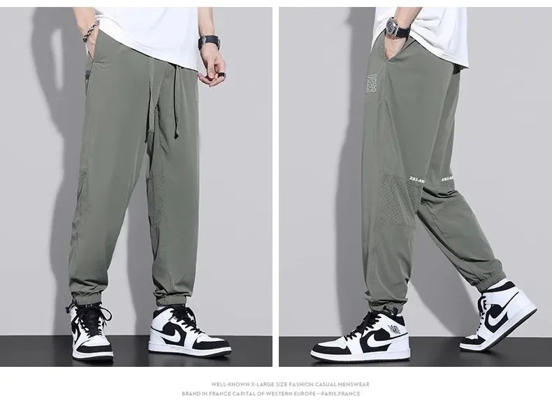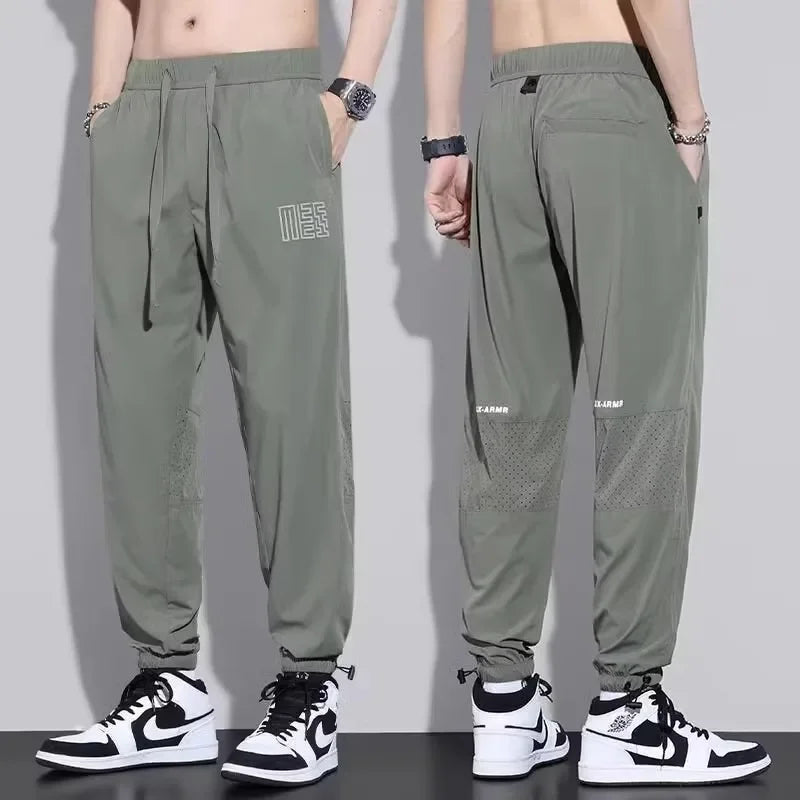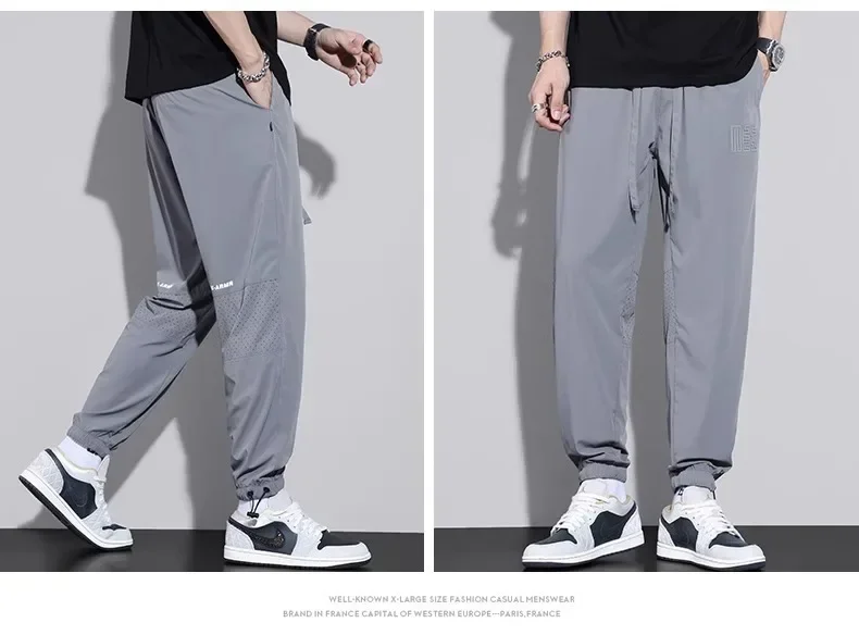 2025 New Men's Summer Pants Mesh Breathable Casual Drawstring Thin Pants Loose Pants Sports Fitness Pants Trend Fashion Style