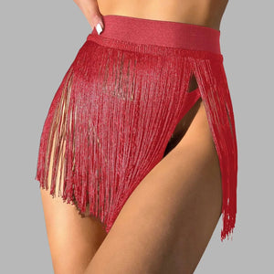 2025 New Women'S Beach Tassel Mini Skirt Bikini Triangle Swimsuit Short Skirts Bikini Beach Vacation Swimsuit Half Cover Skirt