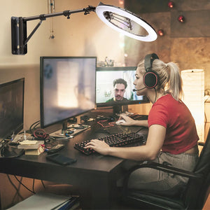 -The ring light can adjust the lighting, with a color temperature of 3200-65000 degrees Celsius, adjustable brightness from 1-100%, 600 LED beads for eye protection chips, and a large light ring to give you enough brightness.