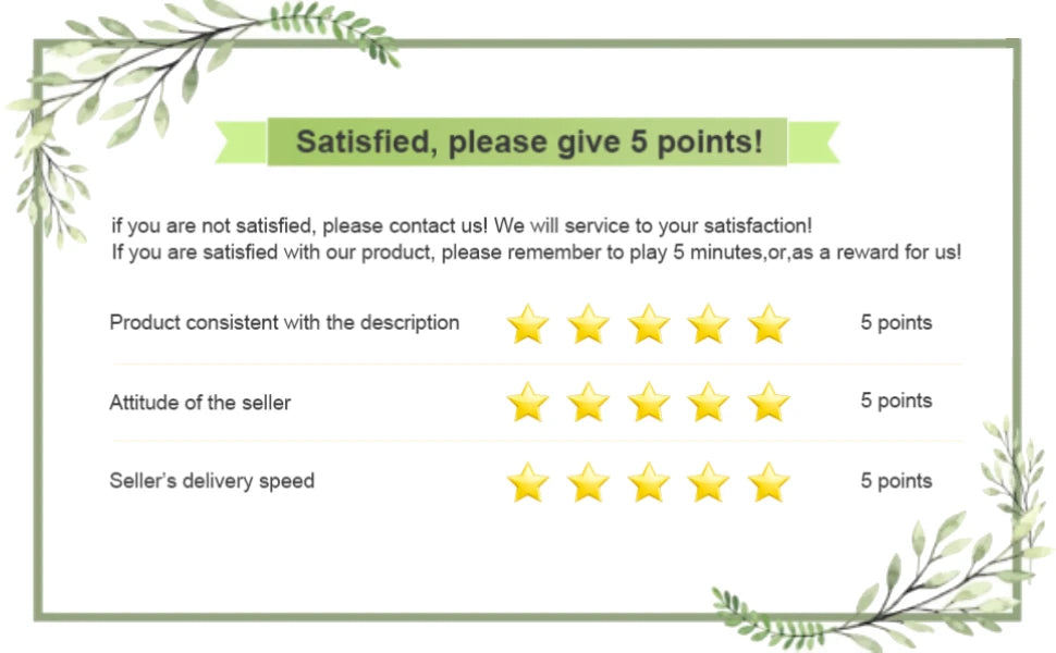 1.Your confirmation will be highly appreciated after receiving the items. Once you have received the product, hope you could leave us a positive feedback(5 stars).