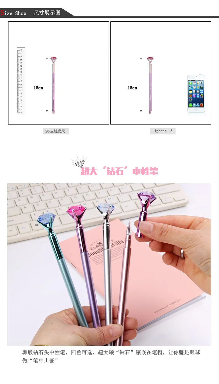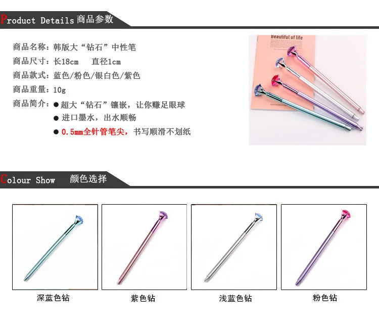 25 Pcs Wholesale Creative Plastic Big Diamond Gel Pen for Gift Pen Student Pen Fresh Stationery Back To School Gel Pen Set