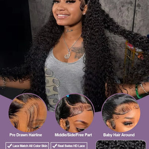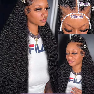 250% Deep Wave Human Hair Glueless Wig 13x4 Lace Frontal Wig Transparent Curly 13x6 HD Lace Frontal Human Hair Wig Ready To Wear