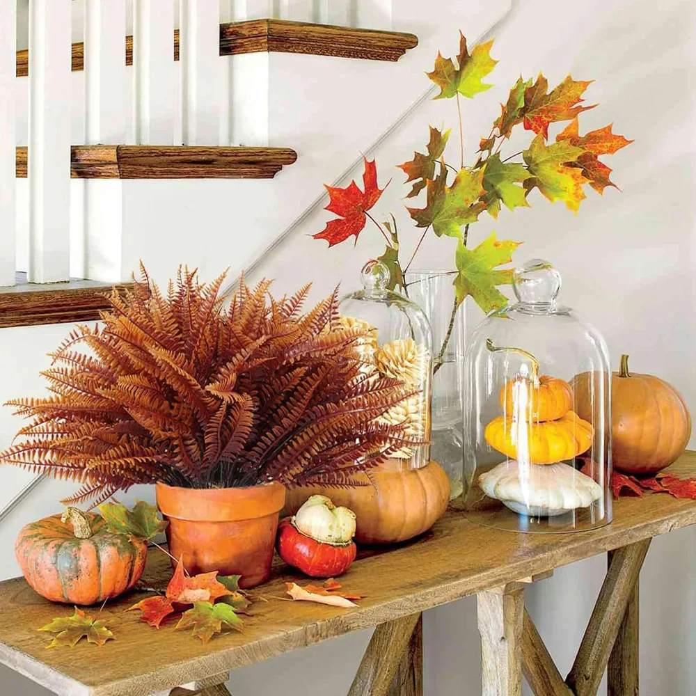 2pcs Artificial Plants Fake Boston Ferns Bushes Greenery UV Resistant Home Garden Outdoor autumn Decor Thanksgiving Halloween