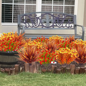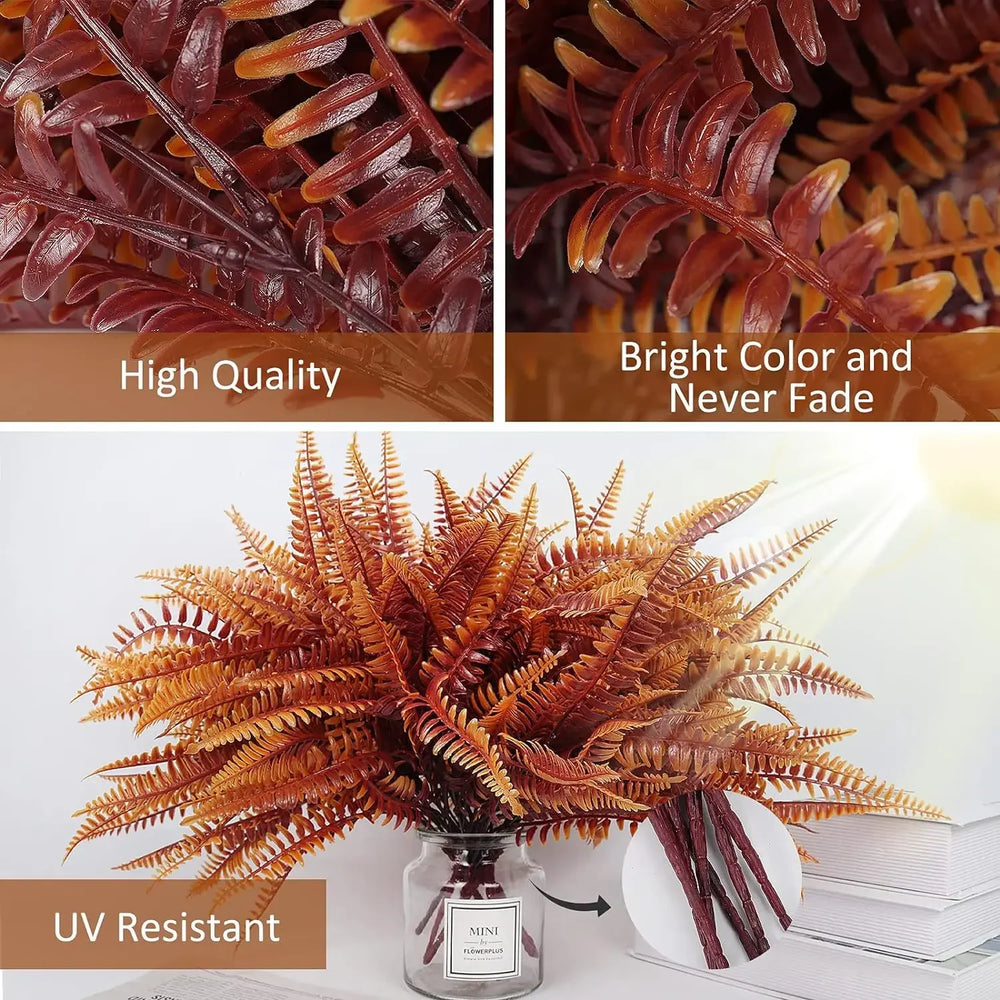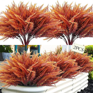 2pcs Artificial Plants Fake Boston Ferns Bushes Greenery UV Resistant Home Garden Outdoor Autumn Decor Thanksgiving Halloween