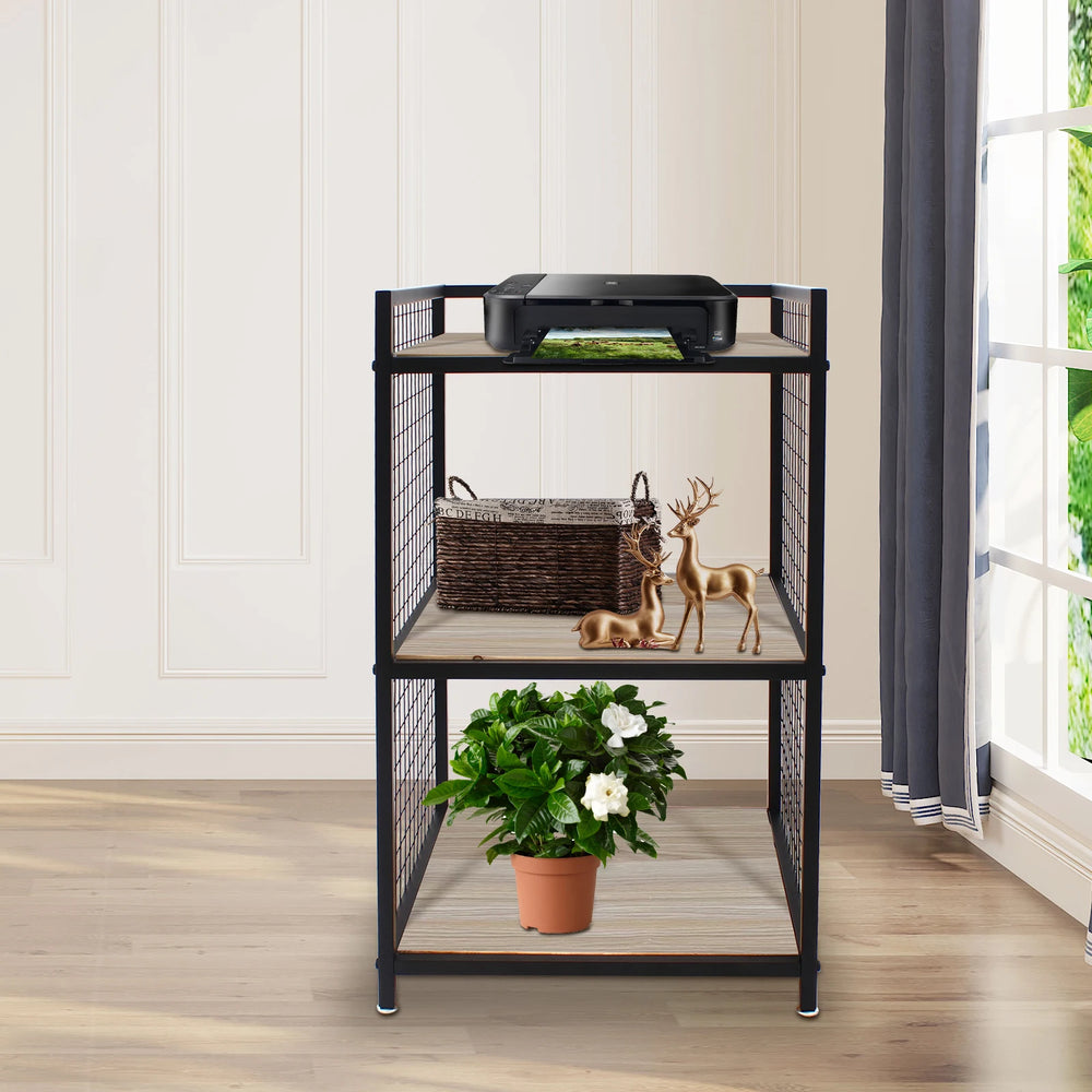 3-Tier Printer Stand Solid Wood & Iron, 44lbs Capacity, Space-Saving Design, Ideal for Office & Home Storage, Durable & Stylish