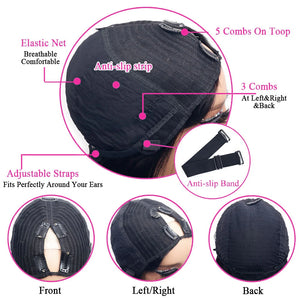 A: 100% Virgin Human Hair Wigs, The best quality hair with affordable price. Medium brown swiss lace, Pre plucked natural hairline. Adjustable Straps, elastic net and 4 combs. All colorful wigs can be offered