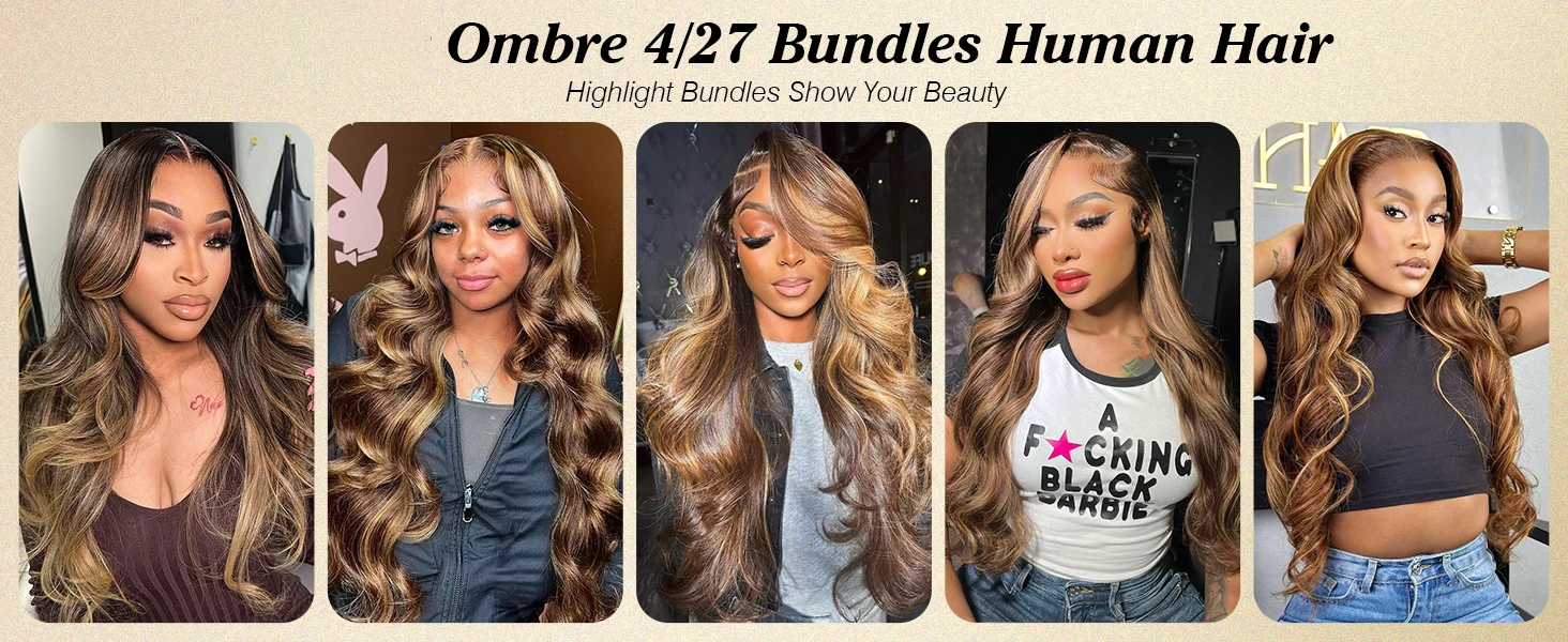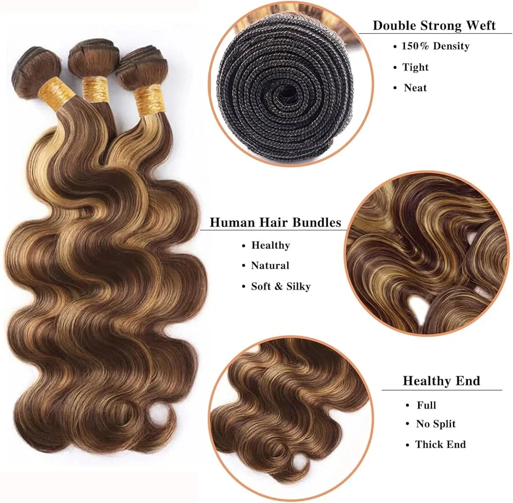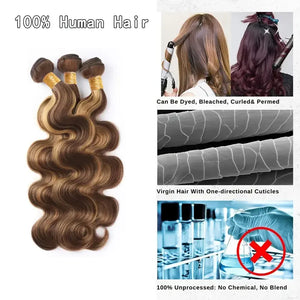 Hair Color:P4/27 Brown Ombre Honey Blonde Highlight Human Hair Bundles