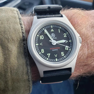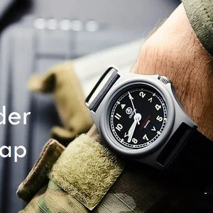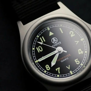 This watch was inspired by the elite Pathfinder unit of the British Parachute Regiment. It is inspired by and improves upon the classic style of the British Army's G10 watch. The retro dial adds the directional arrow markers. Military sword hands have been used instead of stick hands, and Swiss SN1 long-term high-intensity lume has been used for easy reading in the dark. It is super accurate and easy to read whether it is day or night. The movement is a genuine Japanese Miyota Super 2035 long-term high-precision gold quartz movement, the case is 100m waterproof, and the watch has a unique enhanced anti-reflective design. The case is constructed of 316L stainless steel which has been sand blasted to be non-reflective. All things considered the Pathfinder is an extremely tough and durable tool watch. Dimensions and Specification: