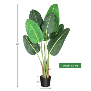 4/5 Ft Artificial Tree Bird of Paradise with 8/10 Trunks 48/60 inch Faux Plant Fake Banana Tree Plant with Pot for Home Decor