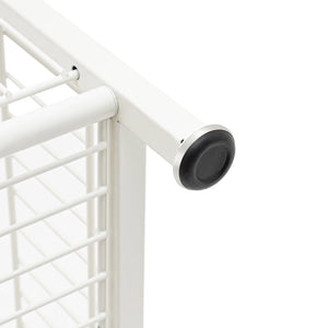 This 4-tier metal shelf is made of high-quality cold-rolled steel and undergoes a precise baking paint process, with a smooth and bright surface and strong load-bearing capacity. Each tier is equipped with a guardrail, which can effectively prevent items from slipping and increase usage safety. In addition, the 4 universal wheels(two of them are lockable) allow for easy movement and positioning. This shelf is an excellent assistant to store and display your items.