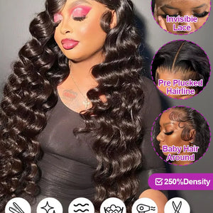 40 Inch HD Loose Deep Wave 13x6 Lace Front Human Hair Wigs Brazilian Curly Water Wavy 13x4 360 Lace Frontal Wigs For Women 250%