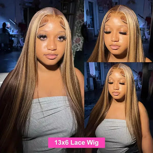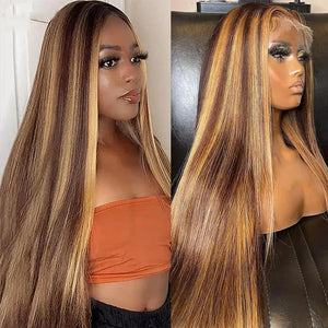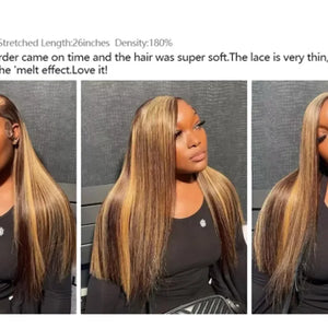 44 Inches Bone Straight Highlight Lace Front Human Hair Wig 13x6 Honey Blonde Colored Human Hair Wigs For Women 200 Density