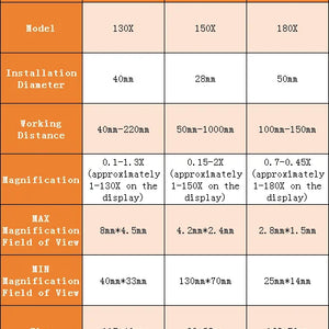 Magnification 0.15-2X (approximately 1-150X on the display)