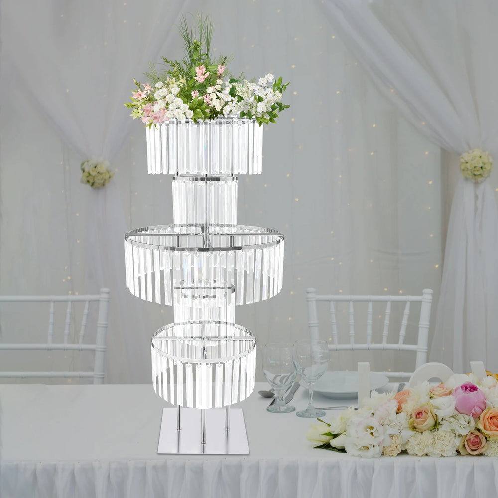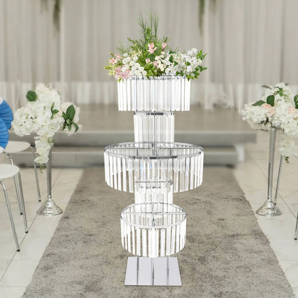 5 Tier 110cm Clear Silver Flower Stand Round Flower Stand for Weddings, Parties, And Special Occasions