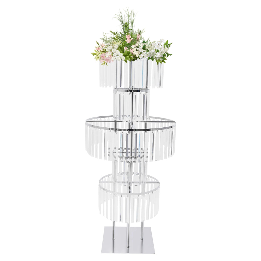 Excellent Display Effect: Exquisite finishes and a unique hollow design with 5 tiers of sparkling crystal pendants make this display unique and elegant for your weddings and events. You can also arrange it according to your ideas and DIY as you like to create a rich visual effect. Moreover, the top has enough space for flowers or other decorations ( all excluded).