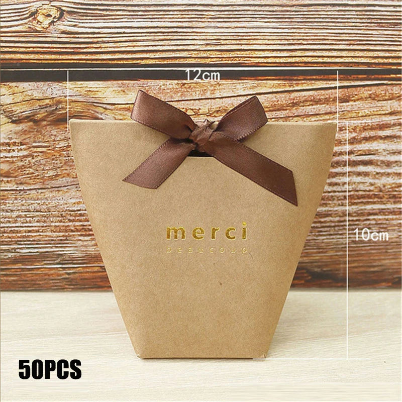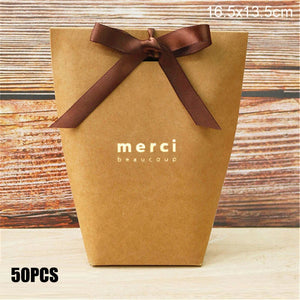 50pcs/lot Black White Bronzing "Merci" Candy Box French Thank You Wedding Favors Gift Box Package Birthday Party Favors Bags
