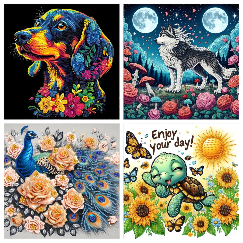 5D DIY a cartoon animal diamond painting kit suitable for Thanksgiving Christmas decoration gift irregular diamond kit craft