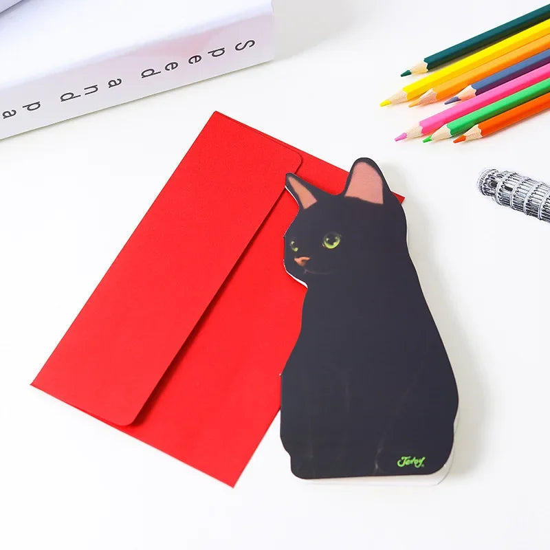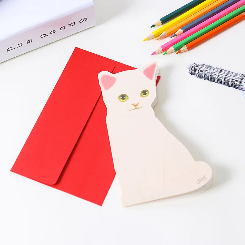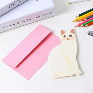 5Pcs Cute Cat Theme Greeting Card Birthday Thank You Cards Envelope Set