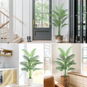Realistic Artificial Areca Palm Plant: Our carefully crafted Artificial Areca Palm Silk Tree closely mimics the look of a real palm tree, adding a touch of nature to any room, office, or outdoor space. This lifelike fake palm tree stays green all year round, making it a perfect housewarming gift and ideal for all seasons.