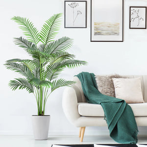 Premium Quality and Lifelike Design: This 7ft tall artificial palm tree is made from durable polyester material with simulation textured areca palm silk leaves; the fake tree has 15 nature trunks and each individual frond is carefully crafted with a lush mix of wispy feathery shaped leaves, the pot is made of solid cement which to prevent children, pets knock it down.
