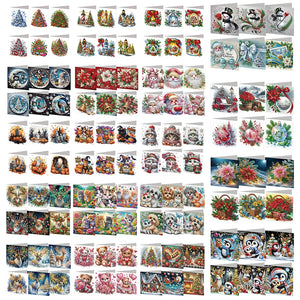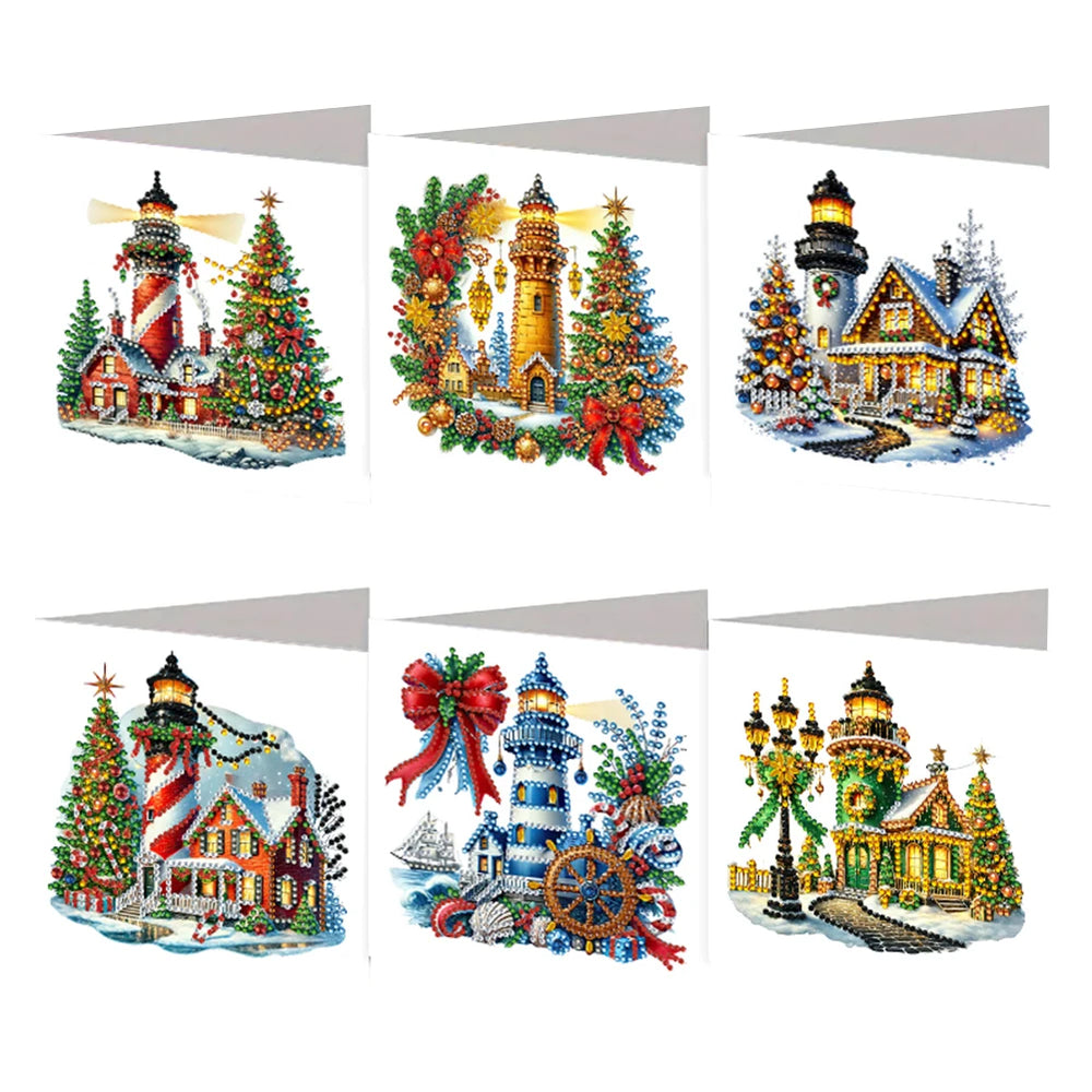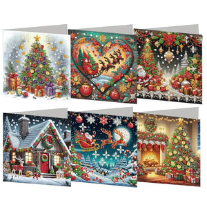 6PCS DIY Xmas Designs Rhinestone Diamond Art Mosaic Postcards Diamond Art Greeting Cards for Festivals and Celebrations
