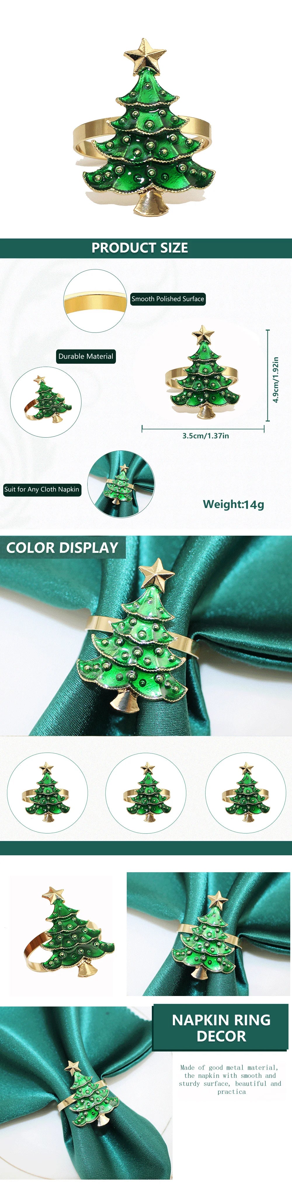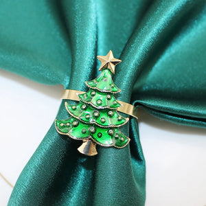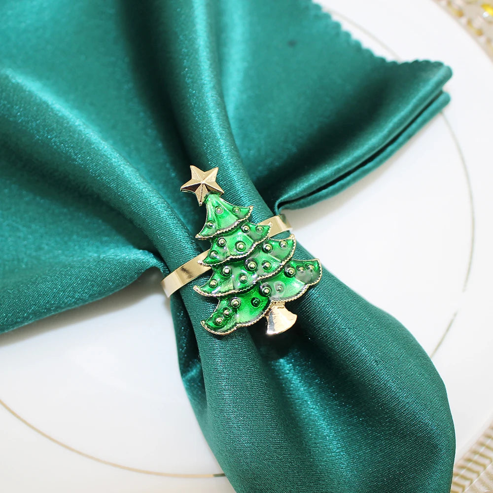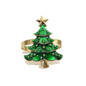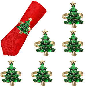 6Pcs Rustic Christmas Tree Napkin Rings Green Xmas Tree Napkin Holder for Christmas Thanksgiving Wedding Dinning Table Setting
