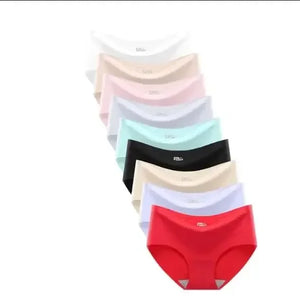 9-Pack Seamless Women Underwear Ice Silk - Mid Waist Sexy Panty Set, Monochrome Comfortable Briefs for Girls Student Daily Wear