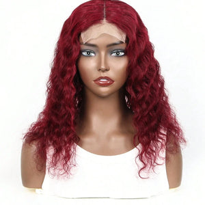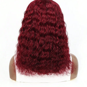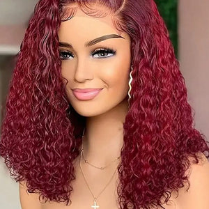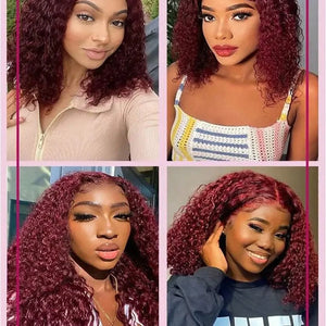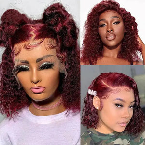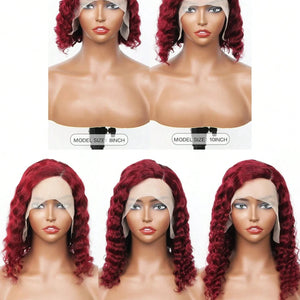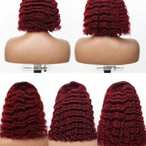 99J Red Burgundy Deep Wave Bob Human Hair 13x4 Short Curly Bob Lace Front Wig For Women 180% Density Win Red Colored Short Lace