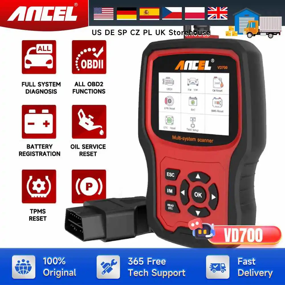 ANCEL VD700 Car Diagnostic Tools Full System ABS SRS EPB TPMS DPF OBD2 Automotive Scanner Code Reader For VAG VW Audi Skoda