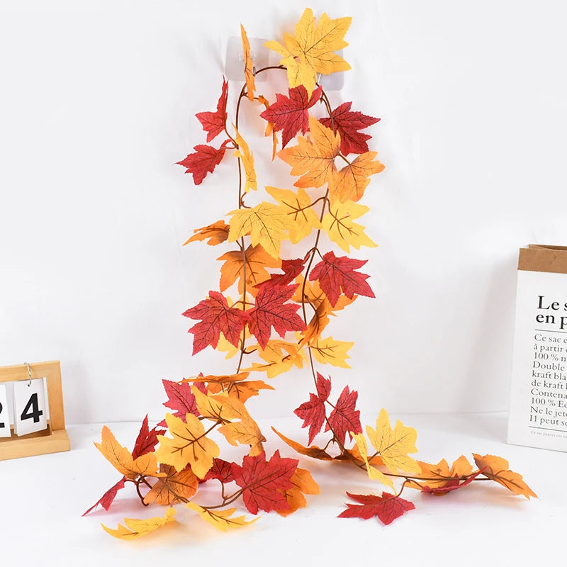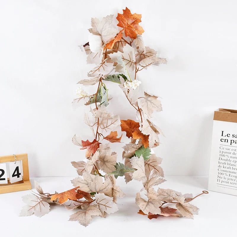 Artificial Maple Leaves Garland Pumpkin Fake Plants Autumn Fall Home Decoration Thanksgiving Halloween Christmas Wedding Decor