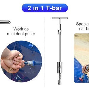 6. Align the T-shaped repairer and press the drawing gasket with hot melt glue, pull the sliding rod backwards to pull up the dent;